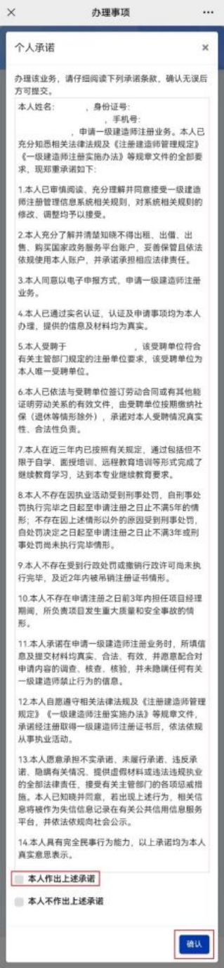 第五步:點擊“查看承諾書”(圖9-2),條款(圖10)勾選“本人作出上述承諾”,點擊“確認”;
