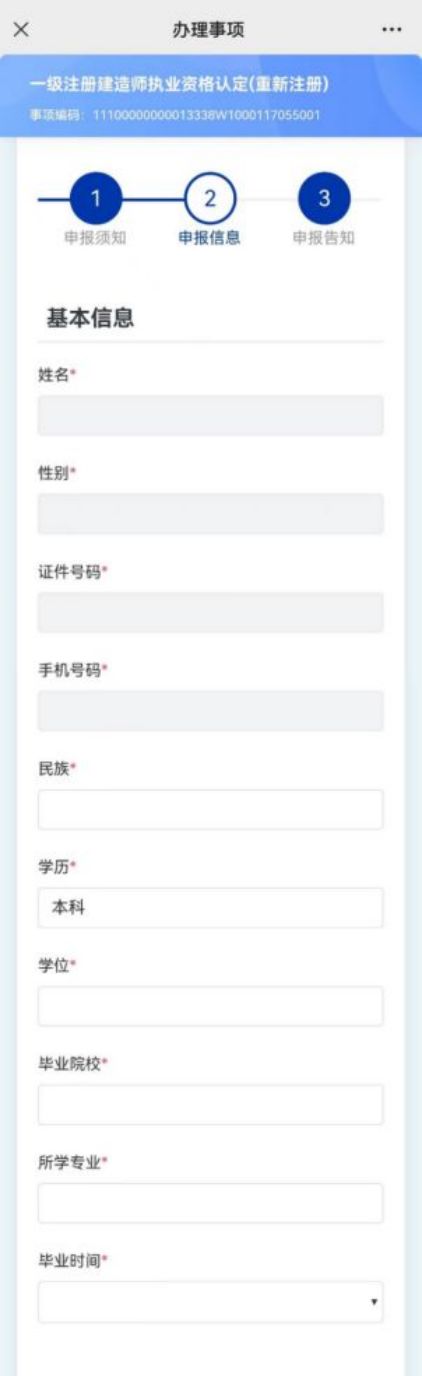 第一步:進入申報信息填寫頁面后,請如實填寫民族、畢業(yè)院校、所學專業(yè)、學歷信息、畢業(yè)時間等信息(圖9-1);