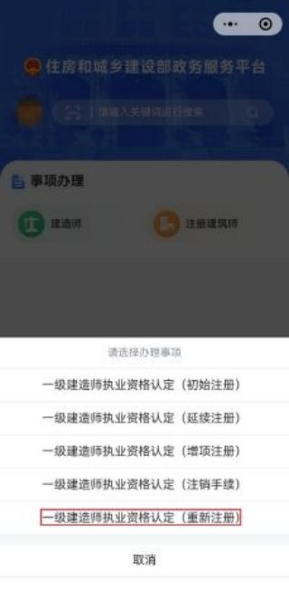 使用本人手機打開“微信”APP,搜索并打開“住房和城鄉(xiāng)建設部政務服務平臺”微信小程序(圖1)。首次使用時,請先設置“頭像”和“昵稱”(圖2)。完成設置后點擊“建造師”(圖1),在列表中選擇“一級建造師執(zhí)業(yè)資格認定(重新注冊)”(圖3),然后點擊“在線辦理”(圖4)。首次使用時,需先驗證是否為已注冊用戶(圖5),按照提示輸入“姓名”、“身份證號碼”,點擊“確定”,如提示“未查詢到該用戶,是否前往注冊?”,請點擊“確定”進入“用戶注冊”頁面(圖6)。已注冊用戶的,在圖5頁面點擊“確定”后,直接進入“人臉識別”頁面(圖7)。