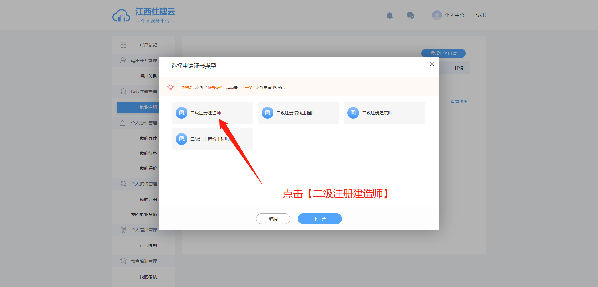 以下操作屬于建造師注冊流程,僅適用于已有住建云聘用單位的人員,且沒有注冊。若你尚未有聘用單位,則無需關(guān)注 本操作流程。